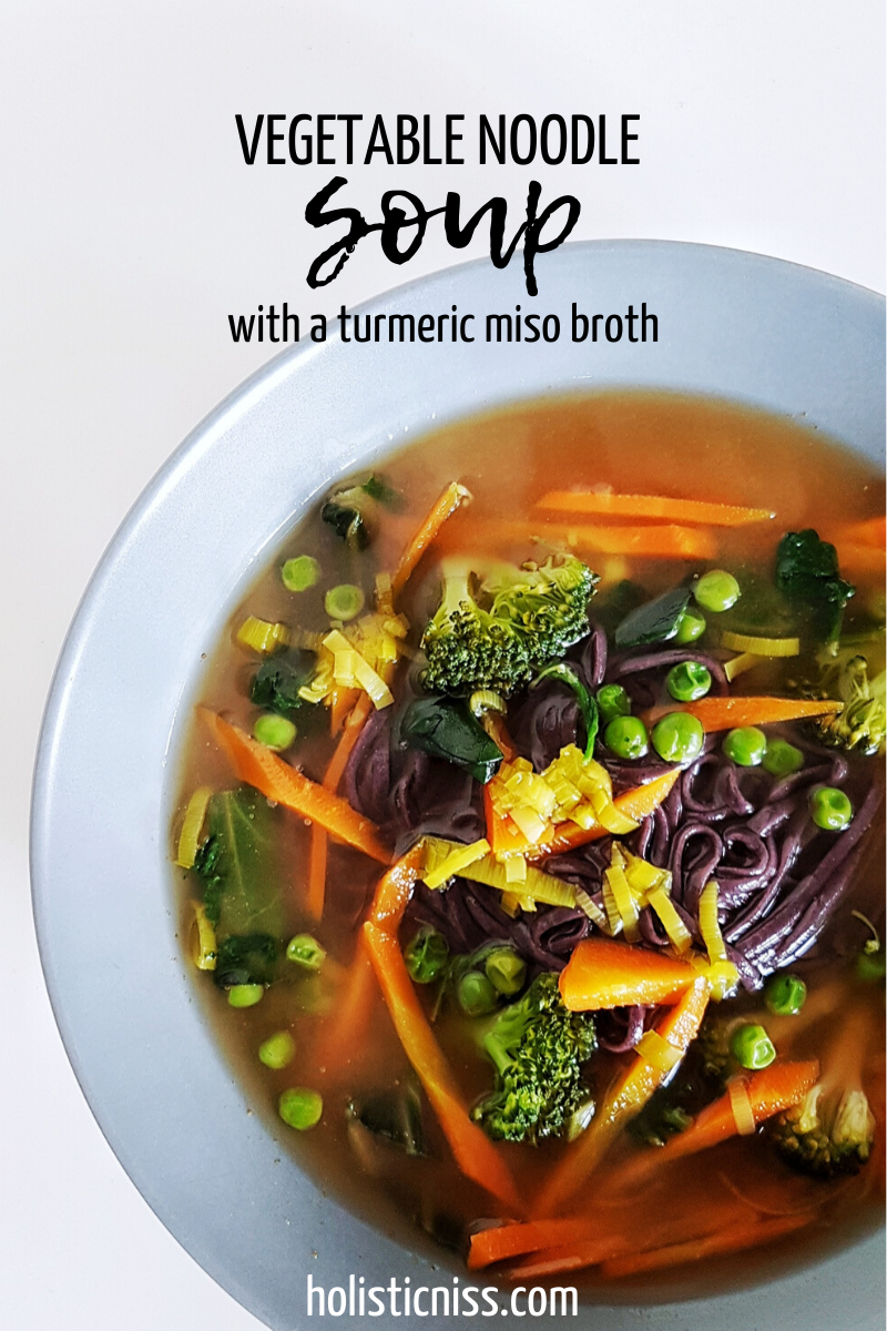 For today, I’m sharing my go to quick and easy vegetable noodle soup in a turmeric miso broth. I promise to share my dashi recipe with you at some point though as well.